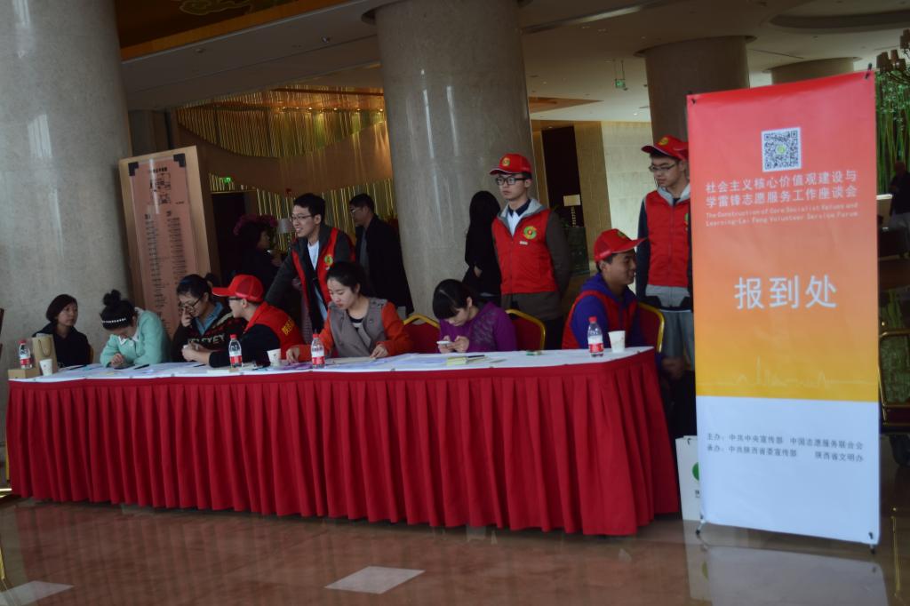 (本网讯)3月23日至25日,西安邮电大学50名大学生志愿者为全国社会主义核心价值观建设与学雷锋志愿服务工作座谈会提供志愿服务。本次会议由中共中央宣传部、中国志愿服务联合会主办,中共陕西省委宣传部、陕西省文明办承办。