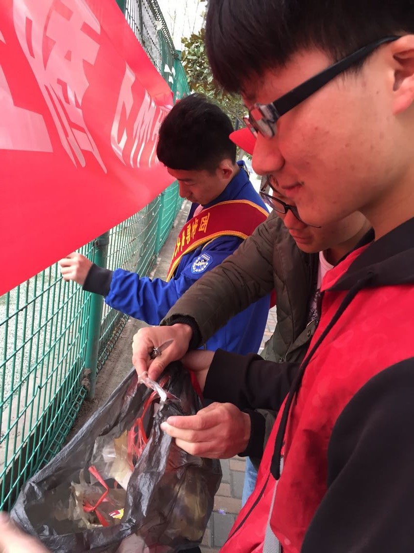 3月26日下午16点30分,上完课的志愿者们携带着小刀、抹布、水桶、垃圾袋等清洁工具前往西区体育馆前集合。此次活动有近30人参加,包括校青协的干事以及协会外招募到的志愿者们。尽管互相不熟悉,但是一个个清洁小分队的成员们都显得兴致勃勃,互相攀谈交流。在带队干事的带领下,志愿者们有序前往事先划分好的区域。他们用小刀将路灯、树干、墙面上的小广告和胶带纸一一清楚,胶带纸留下的痕迹的就用湿抹布抹去。下过几场雨,清理工作变得轻松了一些。活动持续了一个小时,在所有人的共同努力下,校园小广告尽数消失,干干净净的校园与操场上奔跑踢球的学生构建成一幅美好的画面。