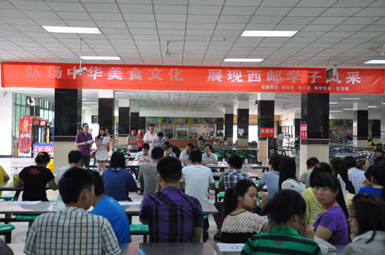 (本网讯)为培养同学们的的动手实践能力,丰富同学们的课余生活,增强同学们的健康饮食意识,同时也为庆祝我校升大成功,活跃校园气氛。5月17日下午,由校团委主办、校学生会生活部承办的第二届“西邮小厨”美食烹饪大赛决赛在我校长安校区旭日苑餐厅一楼火热举行。决赛由从第一轮脱颖而出的16组选手将参加。出席本次大赛的嘉宾有后勤集团总经理王彪、校团委书记荆昊和校团委副书记兼组织部部长李涛,本次大赛的评委由各院系生活部部长担任。