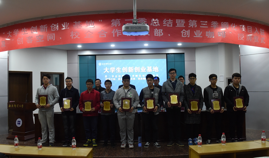 本次授牌入驻大学生创新创业基地的“创客空间”包括,“信息通信网络及安全创客空间”、“电子科技创客空间”、“AutoGo创客空间”;“校企合作俱乐部”涵盖学校与航天科工集团第四研究院、中科院光电研究院、深圳华为、陕西龙腾华夏网络科技有限公司、泰华智慧产业集团股份有限公司、ARinChina、福道茯茶、昱影影视文化传播有限公司、影行(IN WALK)设计、逛集网农特产品网等企业共建合作平台;“创业咖啡”分别在西区基地二楼和东区食堂三楼,面向全校学生开放。分别旨在搭建学生知识、创意、想法到实践、提升、实现的训练平台,搭建企业和学校、学院、教师合作平台,搭建创新创业文化宣传、聚集、推广平台,鼓励学生自发研究课题,参与教师科研,依托合作项目,浓郁文化氛围,进一步提升学生双创能力。