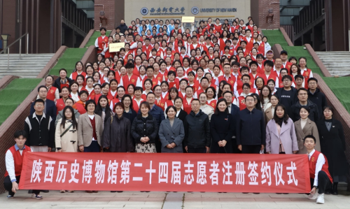 本网讯(通讯员 严凰)近日,陕西历史博物馆第二十四届志愿者注册签约仪式在我校逸夫楼报告厅举行。陕西历史博物馆党委书记、馆长庞雅妮,副馆长步雁,我校党委副书记郑大远、党委学生工作部部长高向鹏及18所高校的相关负责人、教师代表及优秀志愿者参加仪式。